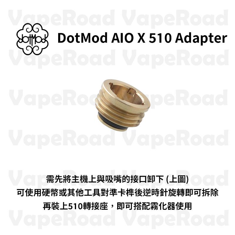 需先將主機上方與吸嘴的接口卸下 可使用硬幣或其他工具對準卡榫後逆時針旋轉即可拆除再裝上510轉接座,即可搭配霧化器使用